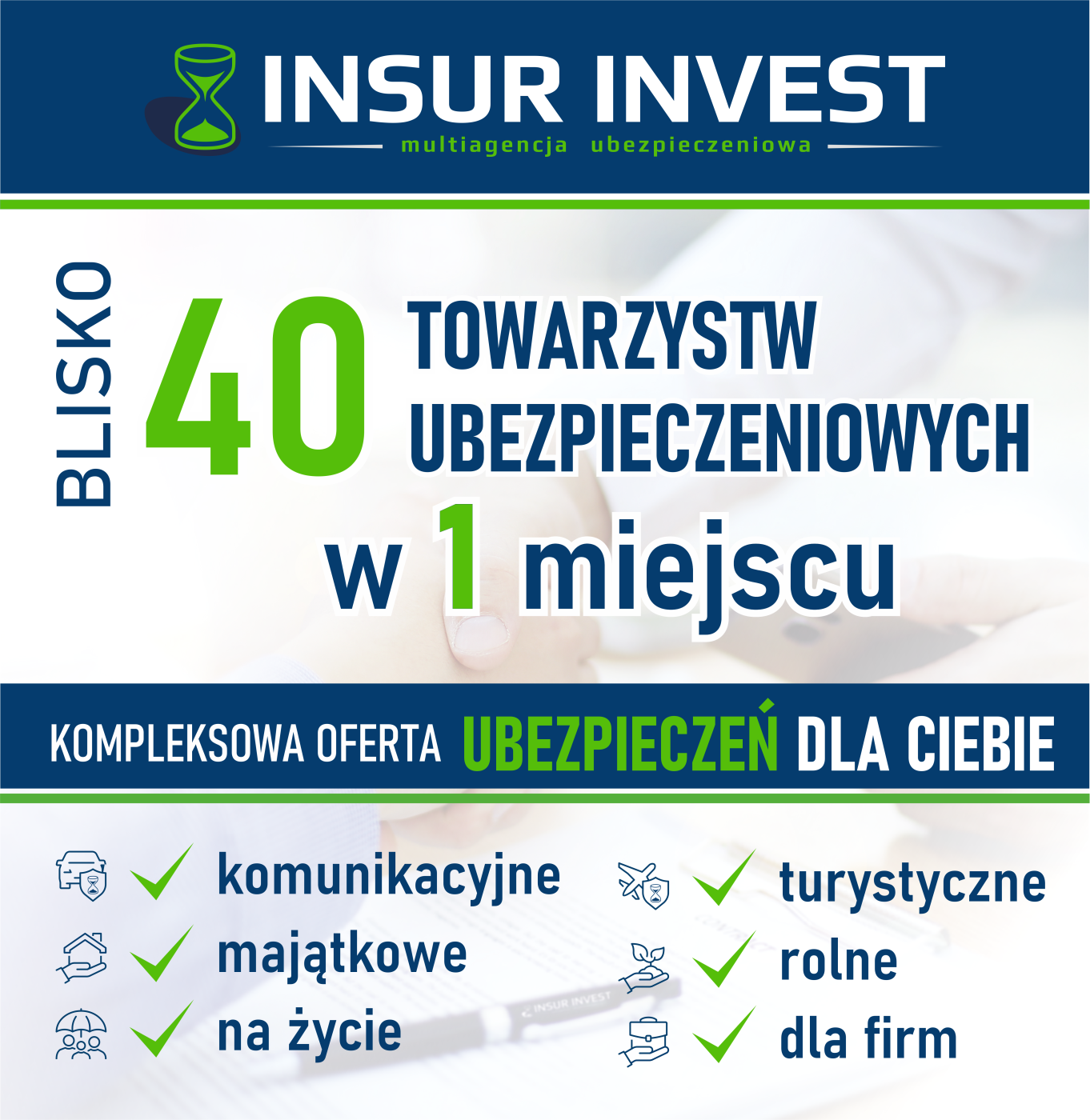 Jestem Agnieszka - doradca ubezpieczeniowy Multiagencji Insur Invest. Chętnie pomogę w doborze jak najlepszej oferty ubezpieczenia. Posiadam bogate doświadczenie w branży. Wiem, jak ważne jest dla Ciebie bezpie...